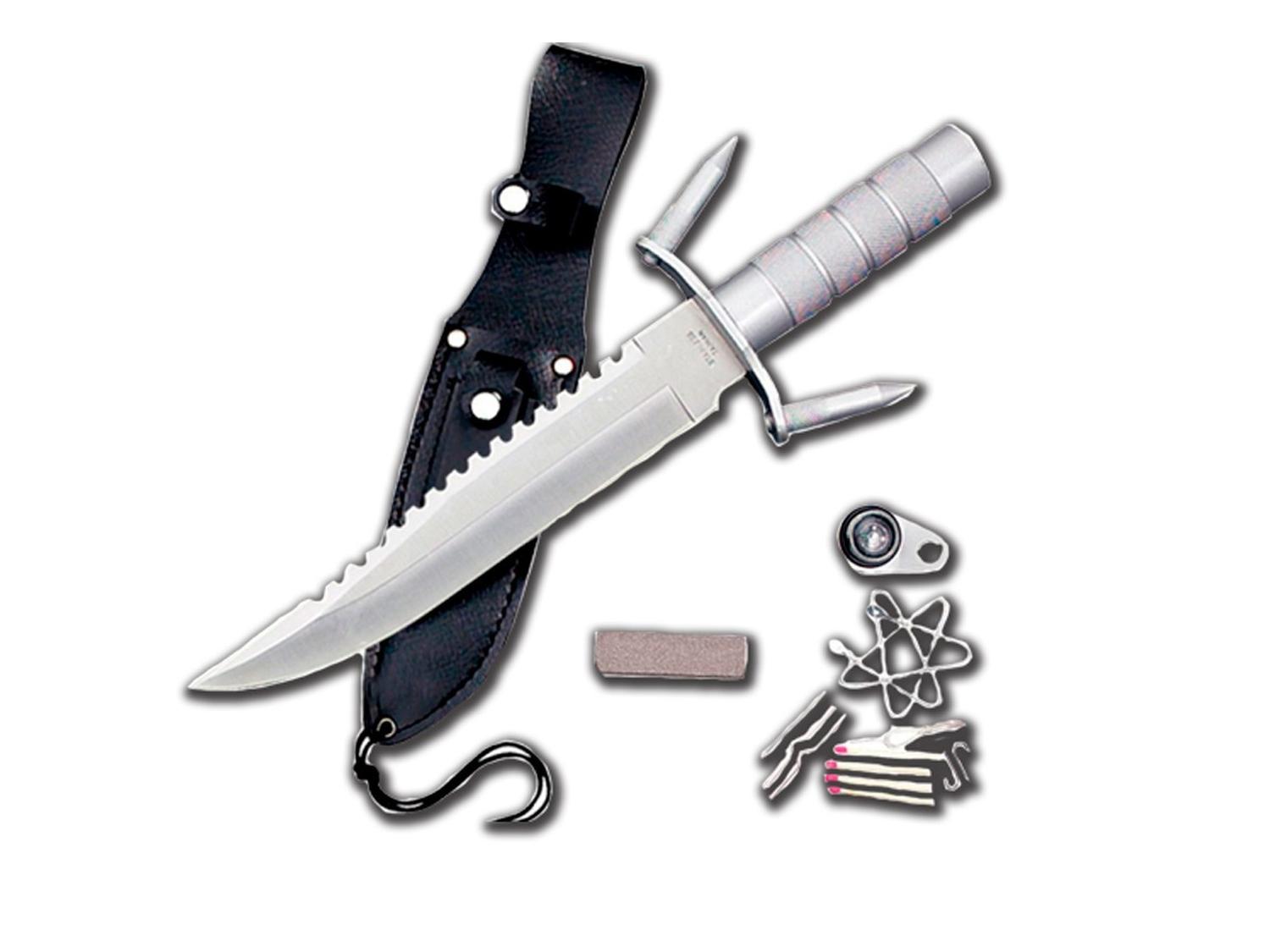 Cuchillo De Supervivencia Con Accesorios Y Funda Plata Cuchillo De Supervivencia Con Accesorios Y Funda Plata